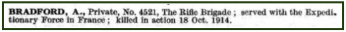 No.4521, Rifleman, Amos BRADFORD
