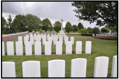 His unit was involved in fighting between Cambrai and Le Quesnoy on 20th October 1918, the day Belle Vue Farm was captured. As he died of wounds and his service record has not been found, it is impossible to say exactly where or when he was wounded.